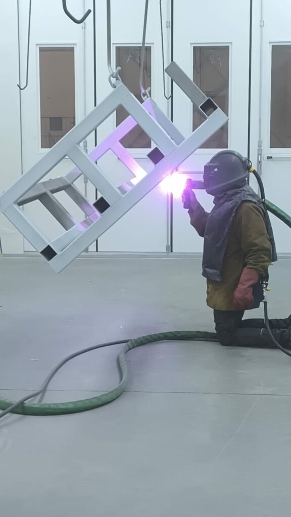 Le sablage est une étape essentielle pour préparer les surfaces métalliques avant traitement.